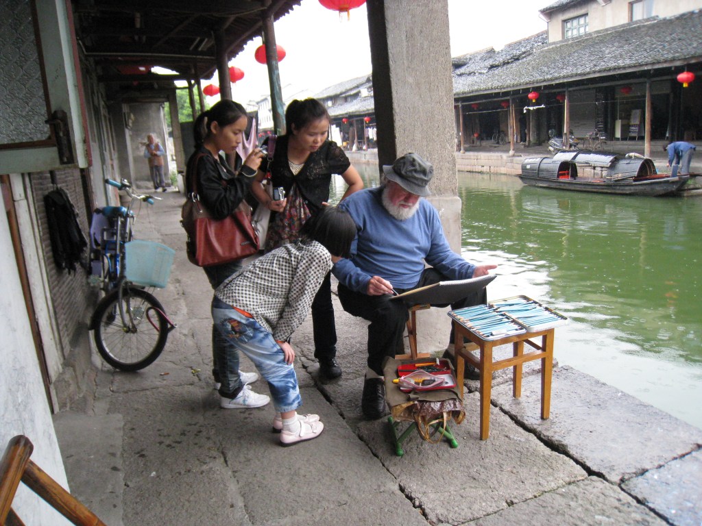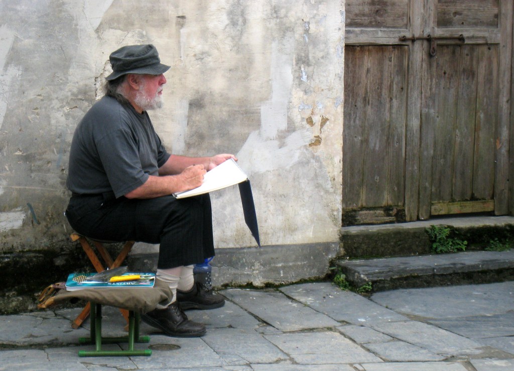 More recently Mervyn has had three exhibitions at the Museum of Modern Art Wales. One, titled ‘Beautiful Journey’ showing a collection of drawings inspired by his extensive travels in China, is an attempt to capture a record of a rapidly vanishing ‘older’ China. Also exhibited were oils and drawings of his more personal work. The book cover contains a collection of sketches, published by the Chinese state publishing house.